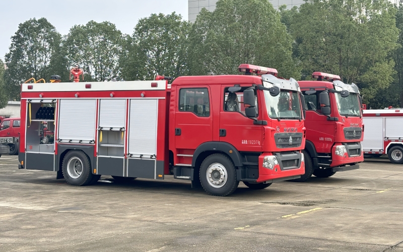 重汽豪沃8噸水罐泡沫消防車:采用國(guó)六底盤(pán)(ZZ5207TXFV471GF5),搭載MC7.34-60發(fā)動(dòng)機(jī)(251Kw),罐體容積為6噸水+2噸泡沫,配備上海CB10/60消防泵和威斯特PL48W消防炮(射程≥60米水/55米泡沫),駕駛室為雙排全金屬封閉式。