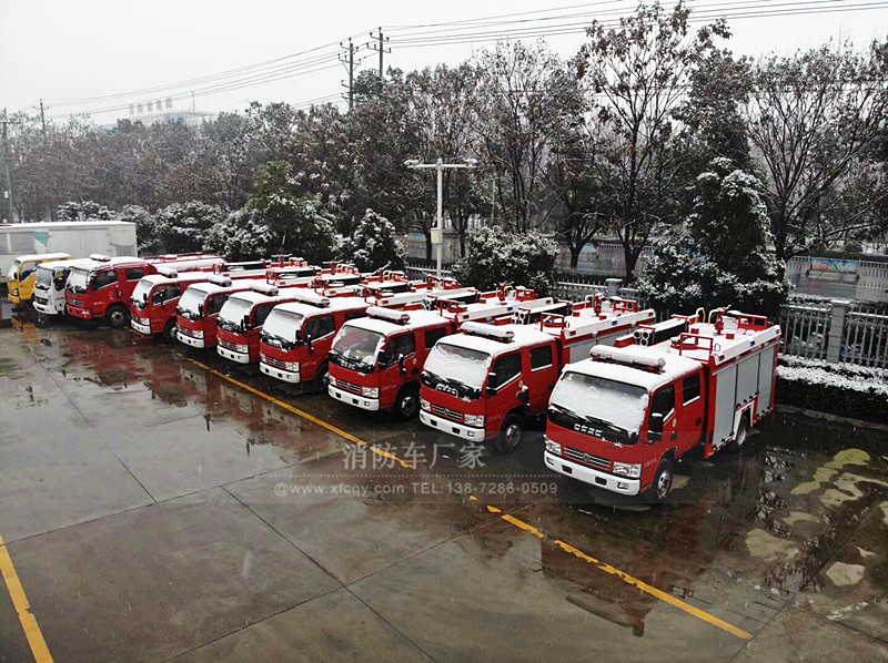 今天;我要發(fā)的是7臺小型東風水罐消防車、載水量2.5噸、配20消防泵、20消防炮、射程也可達50米;雖說噸位比較小。但是全部都是國標標準的配置、所需要的隨車消防器材也是一樣不少、這批水罐消防車是發(fā)往甘肅張掖的、算上路上跑的時間、剛好是富余幾天到交貨期;客戶那邊也給予了充分的理解、可以等雪小了之后再出發(fā)、防止路上上凍結(jié)冰不好走。