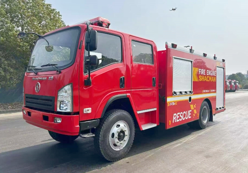 陜汽6立方泡沫消防車批量出口至上海港發(fā)往肯尼亞
