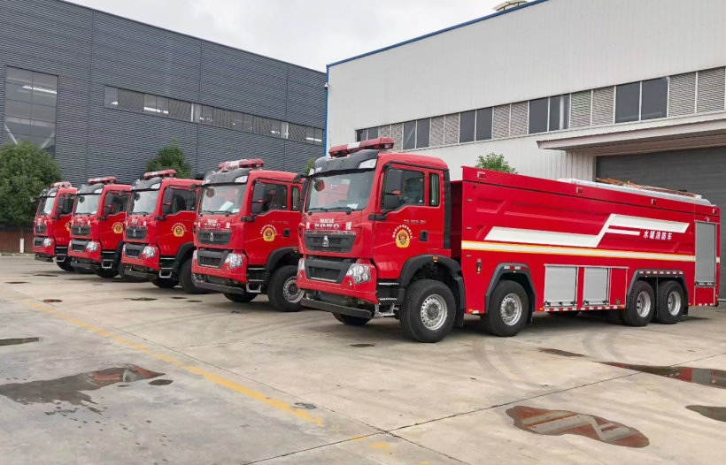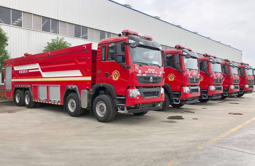 筑牢應(yīng)急防線!重汽前四后八水罐泡沫消防車批量馳援汕頭