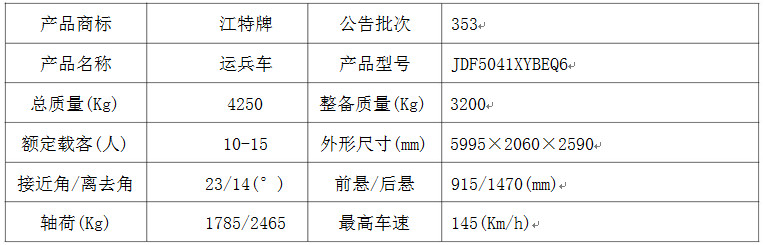 整車型號(hào):江特牌 JDF5041XYBEQ6 型運(yùn)兵車